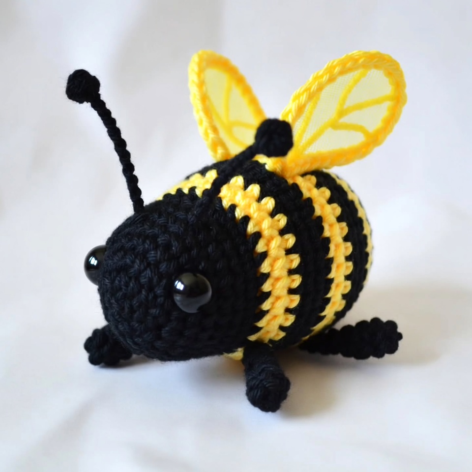 Crocheted black and yellow bumblebee