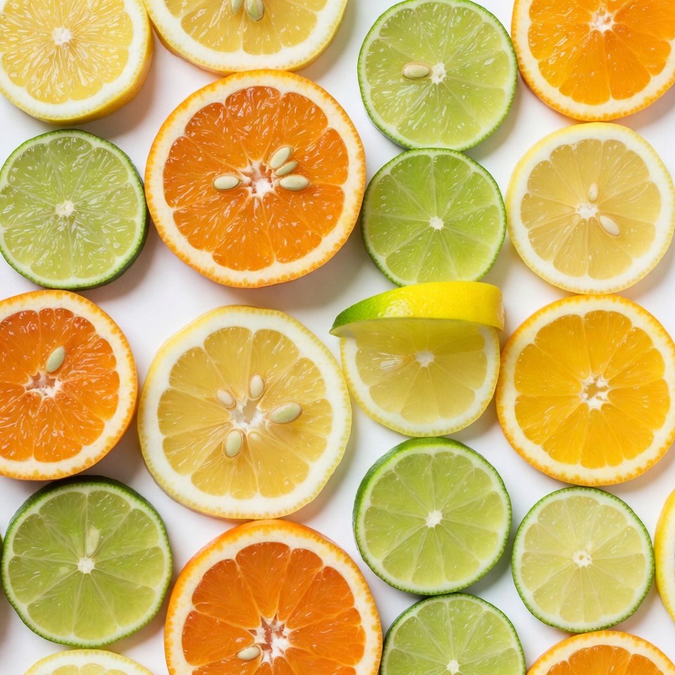 Sliced Limes and Oranges on White