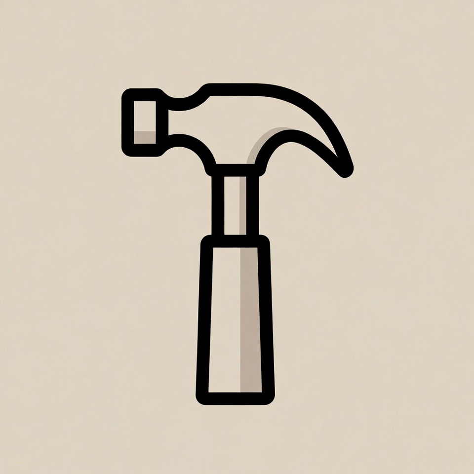 beige background, building, carpentry, claw hammer, construction tool, flat design, graphic, icon, illustration, isolated background, line art, metal head, outline, repair, simple icon, tool, vector, wooden handle, hammer