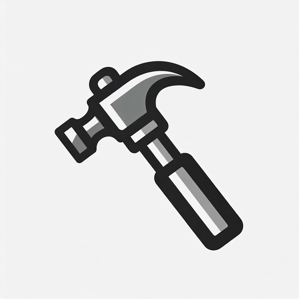 black outline, claw hammer, clipart, construction tool, emoji style, gray shading, hand tool, icon, illustration, isolated background, metal head, outline, simple icon, tool, wooden handle, hammer