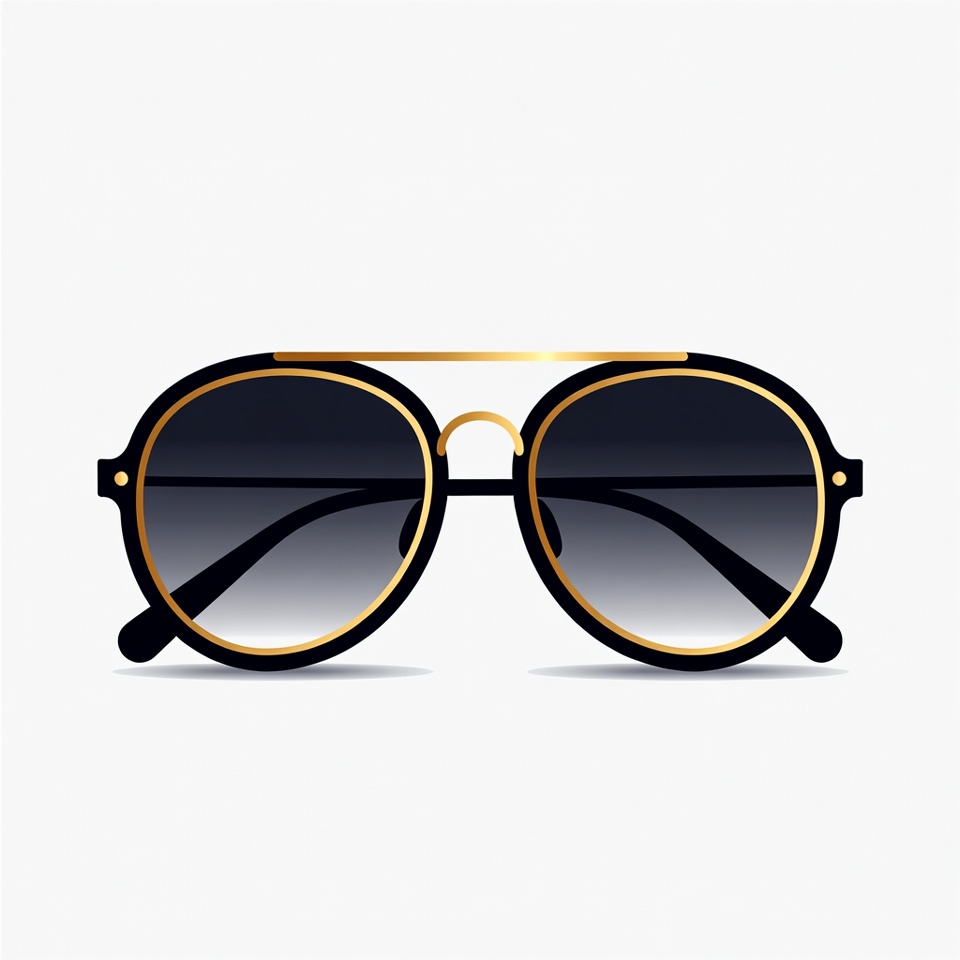 black sunglasses, clipart, designer glasses, fashion sunglasses, gold frame, gold sunglasses, gradient lenses, illustration, isolated background, luxury eyewear, oversized sunglasses, round sunglasses, stylish eyewear, vector graphic, sunglasses