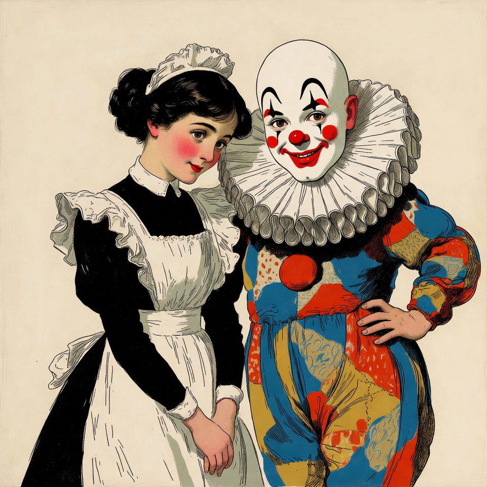 Maid and Clown Vintage Illustration