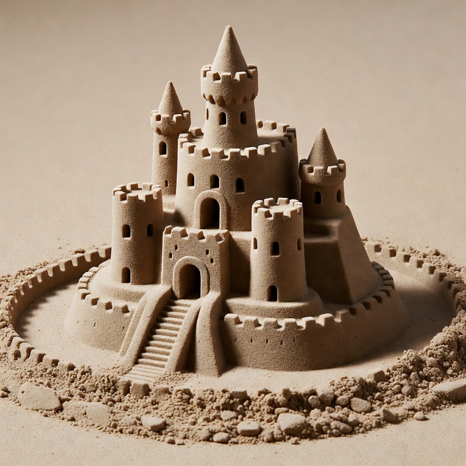 beach, beach sand, castle, detailed sand art, doorway, isolated background, moat, ocean shore, sand sculpture, staircase, summer, towers, turrets, vacation, wall, sandcastle