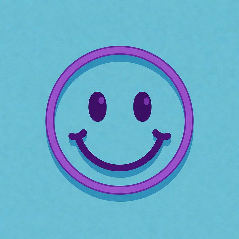 blue background, cartoon, cheerful, clipart, emoji, eyes, face, happy face, icon, illustration, isolated background, mouth, outline, purple, smiley, smiley face