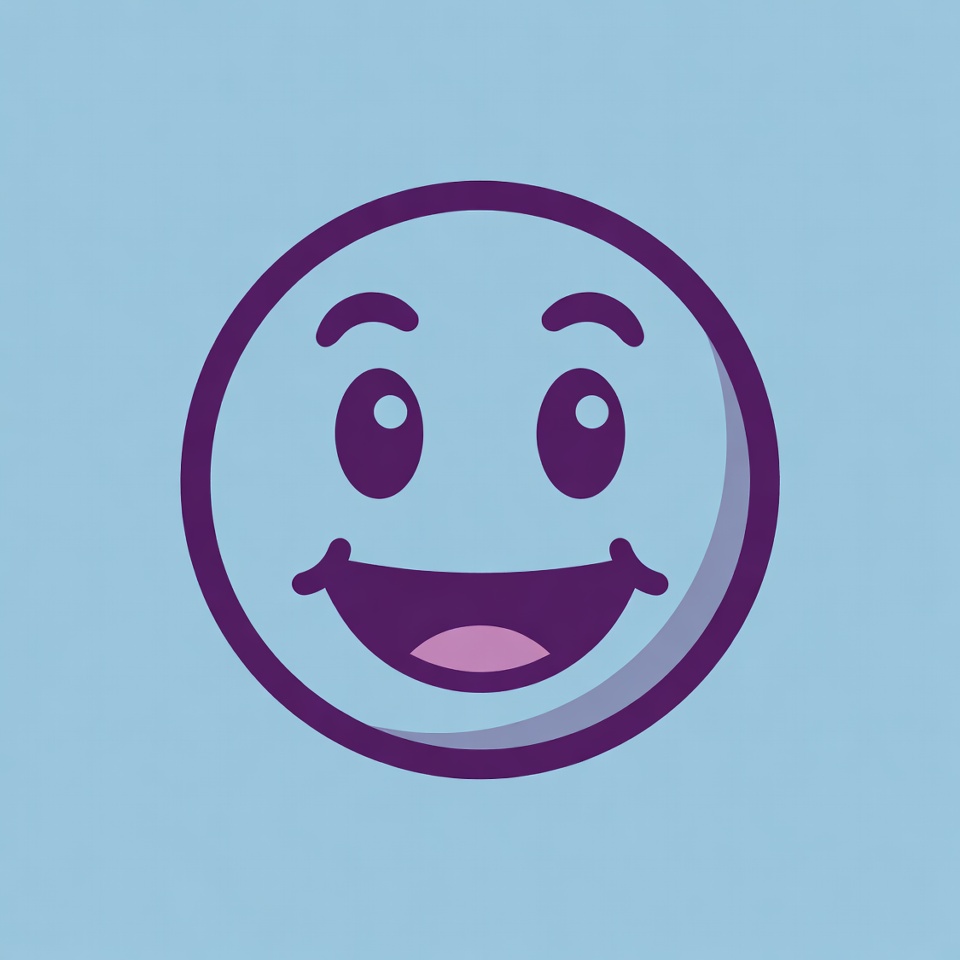 blue background, cartoon face, clipart, emoji, eyes, glossy, happy emoji, illustration, isolated background, line art, mouth, purple, simple, smiley face, smiling emoji, happy face