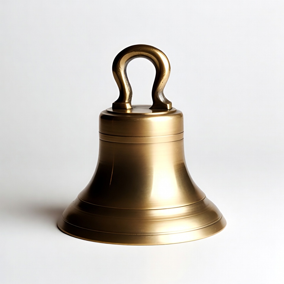 bell, brass, church bell, golden bell, hand bell, handle, isolated, metal bell, object, polished, shiny, white background, brass bell