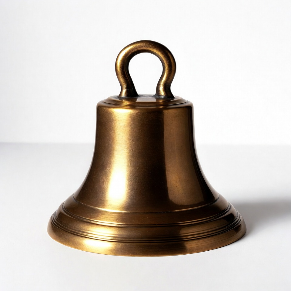 bell, church bell, clapper, decorative bell, golden bell, handle, isolated, metal bell, object, polished, ringing bell, shiny, vintage bell, white background, brass bell