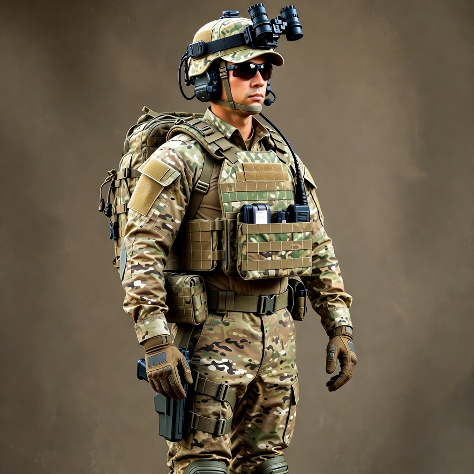 Soldier in Camouflage Gear with Night Vision