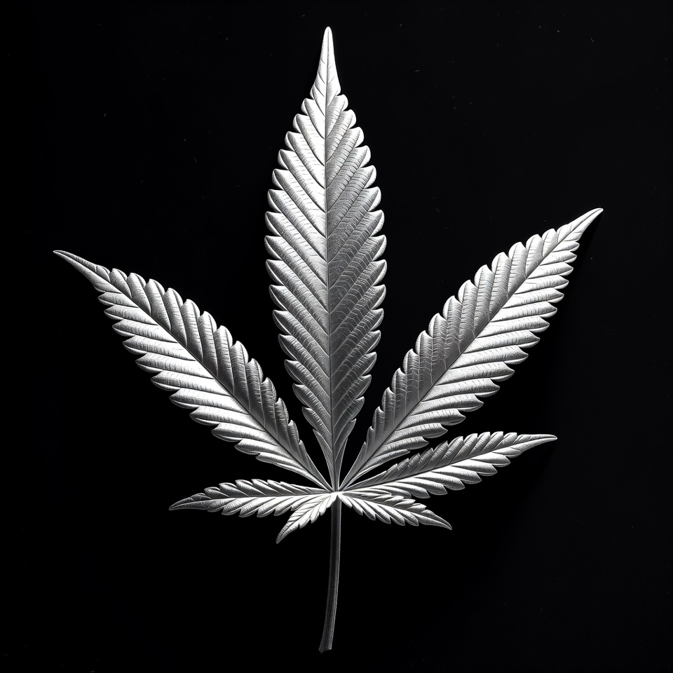 Silver Cannabis Leaf on Black
