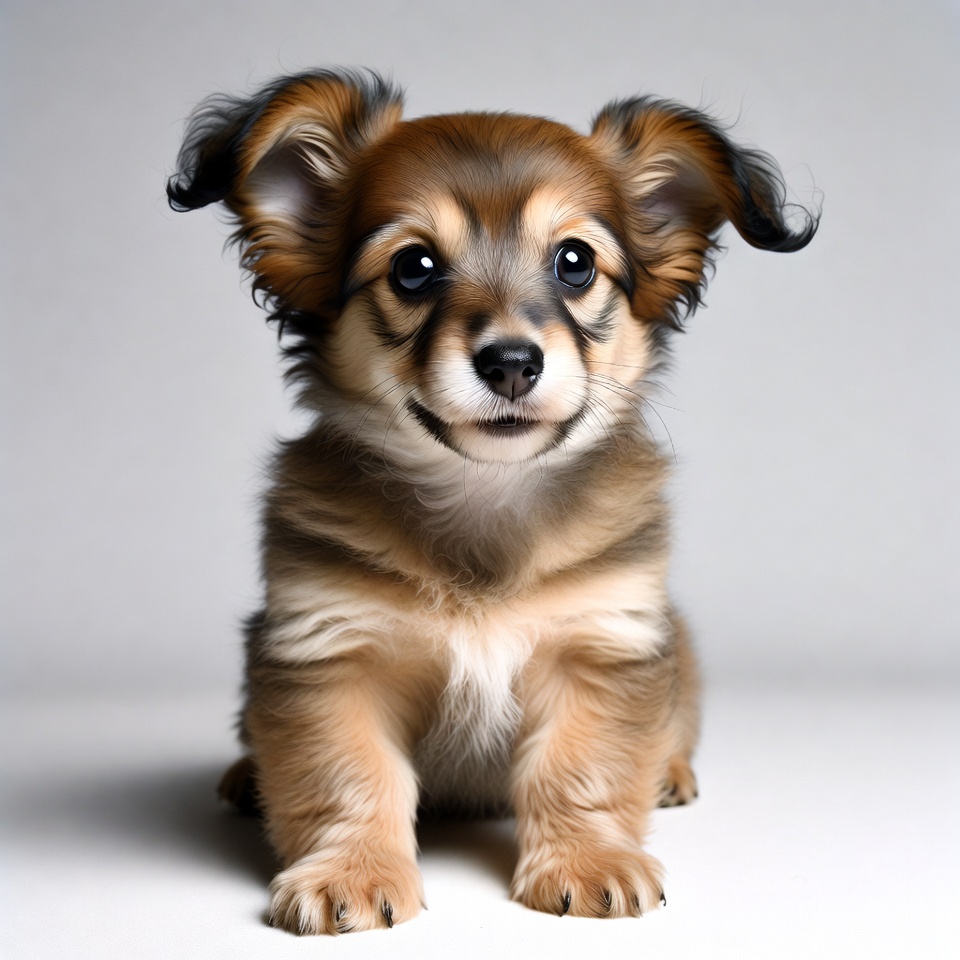 adorable dog, animal, big eyes, brown fur, cute puppy, dog, fluffy dog, fox-like dog, furry, happy puppy, isolated background, long ears, paws, pet, sitting puppy, small dog, young puppy, puppy