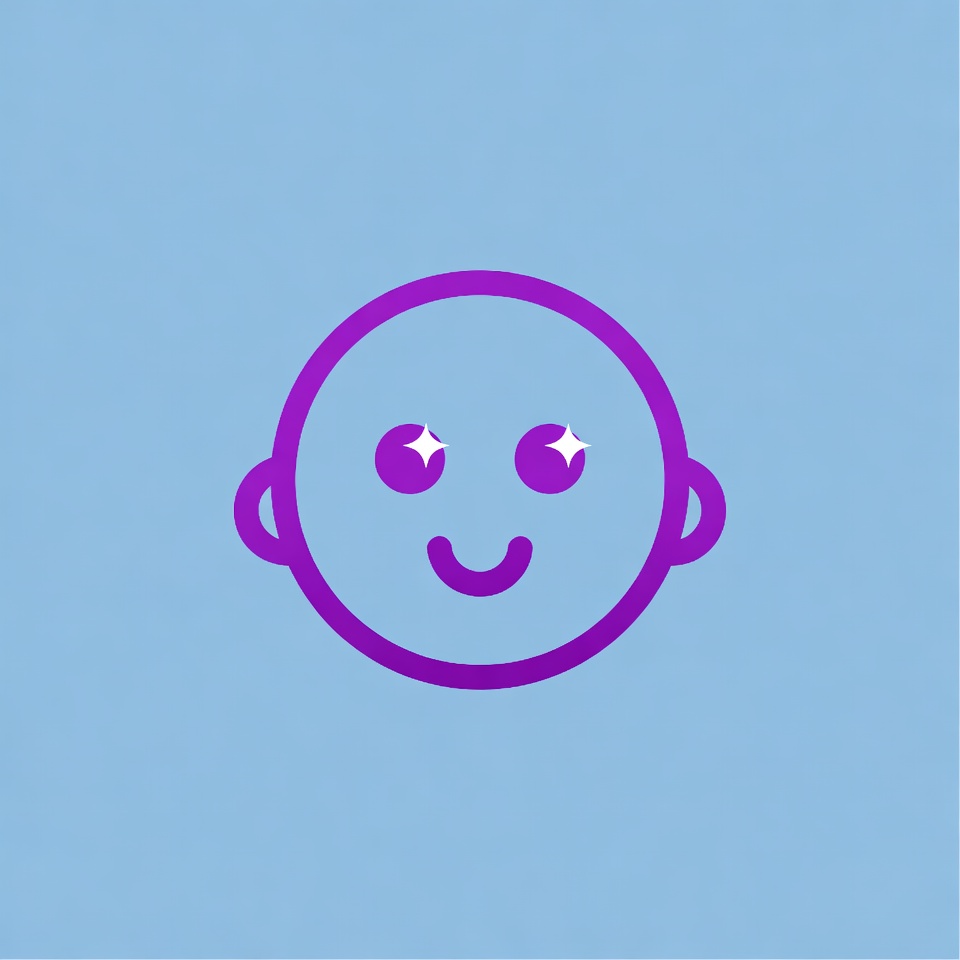 blue background, cartoon face, cheerful, clipart, cute, emoticon, happy face, illustration, isolated background, line art, purple, simple icon, sparkling eyes, smiley face