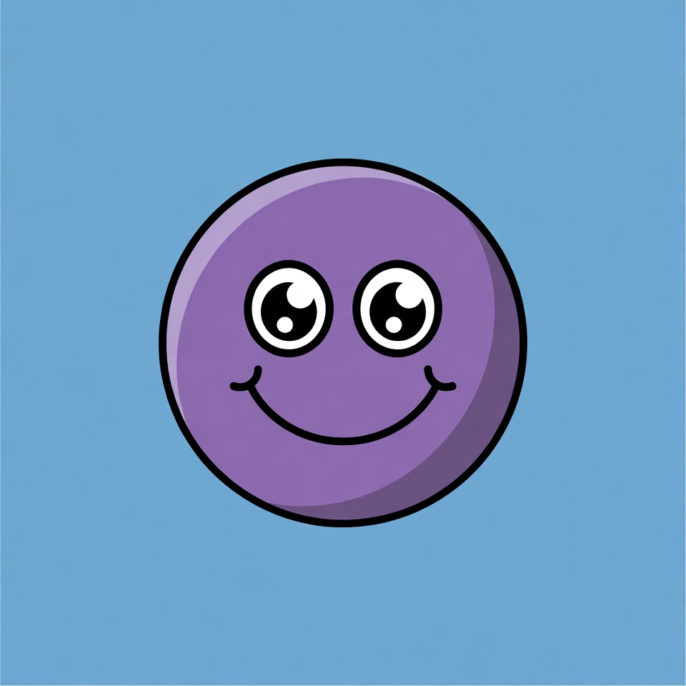 blue background, cartoon, cheerful, clipart, cute, emoji style, emoticon, eyes, fun, graphic, happy face, illustration, isolated background, purple, smile, vector, smiley face