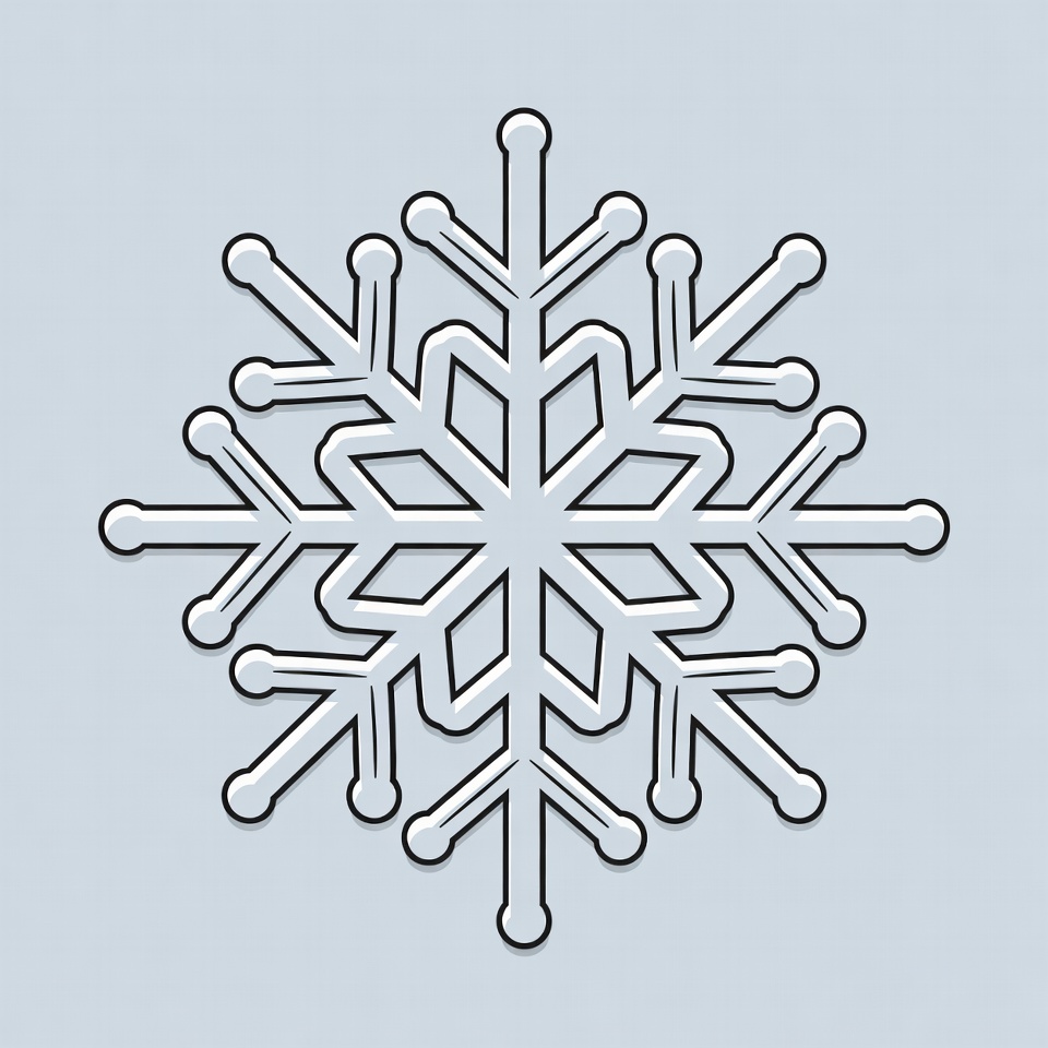 A detailed white snowflake illustration features symmetrical branches and intricate patterns. It is outlined with clean black lines against a light gray background. The design is simple and isolated for easy use.