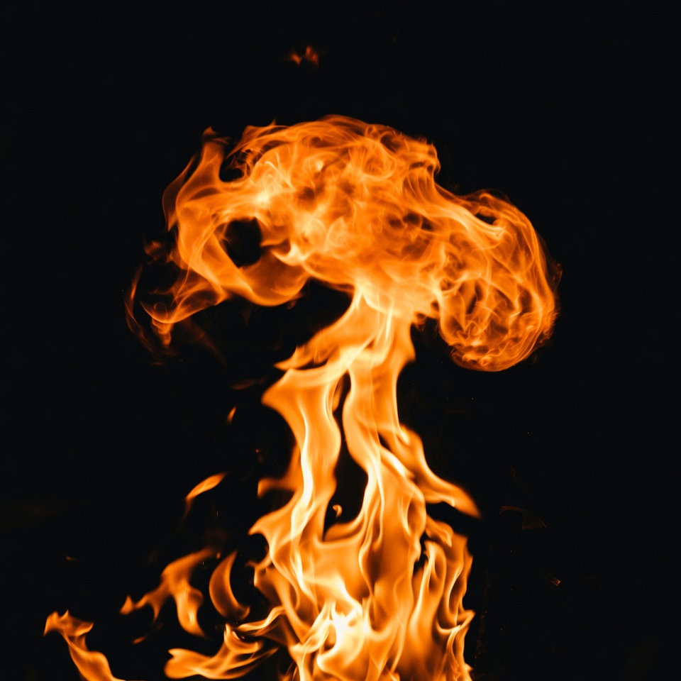 blaze, burning, combustion, dark background, explosion, fiery burst, fiery explosion, fire plume, flame, flame shape, flames, glowing fire, heat, inferno, intense fire, isolated background, mushroom cloud, orange fire, yellow flames, fire