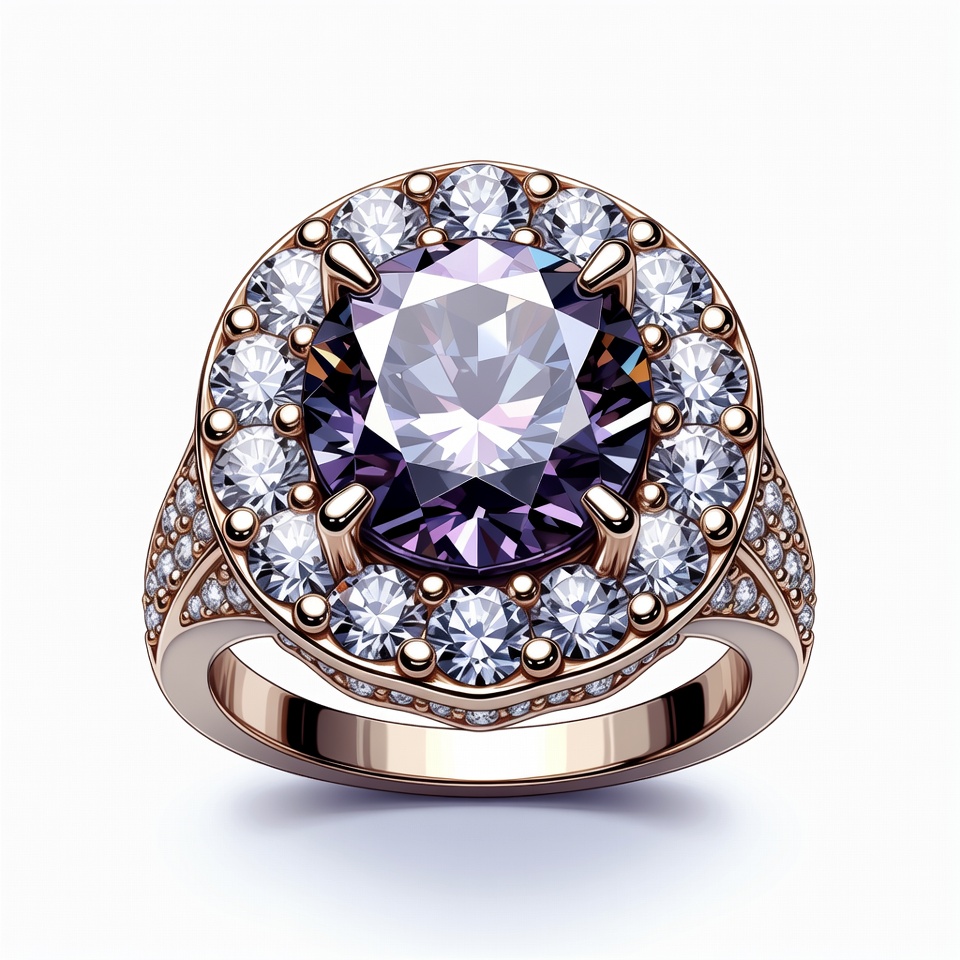 3D render, amethyst diamond, diamond cluster, diamond ring, engagement ring, fashion ring, fine jewelry, gemstone, gold band, halo ring, isolated background, jewelry, luxury jewelry, purple diamond, rose gold, solitaire ring, wedding ring, white diamonds, ring