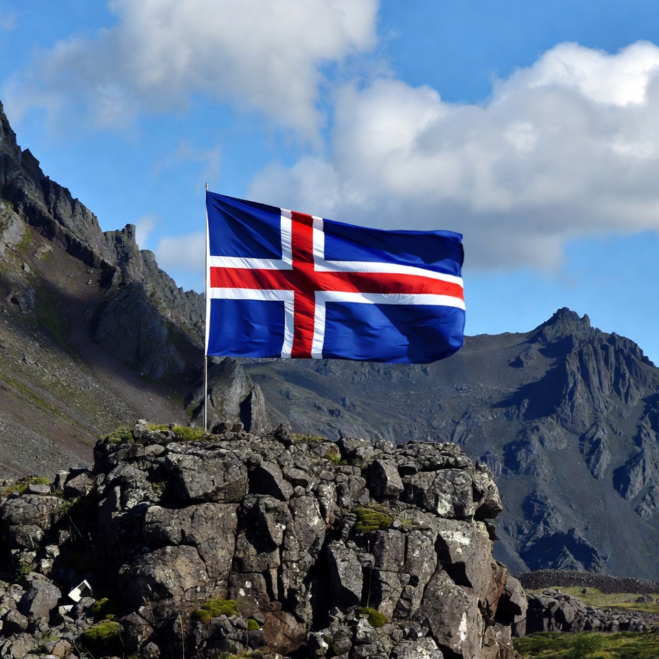 Icelandic Flag on Rocky Mountain Peak