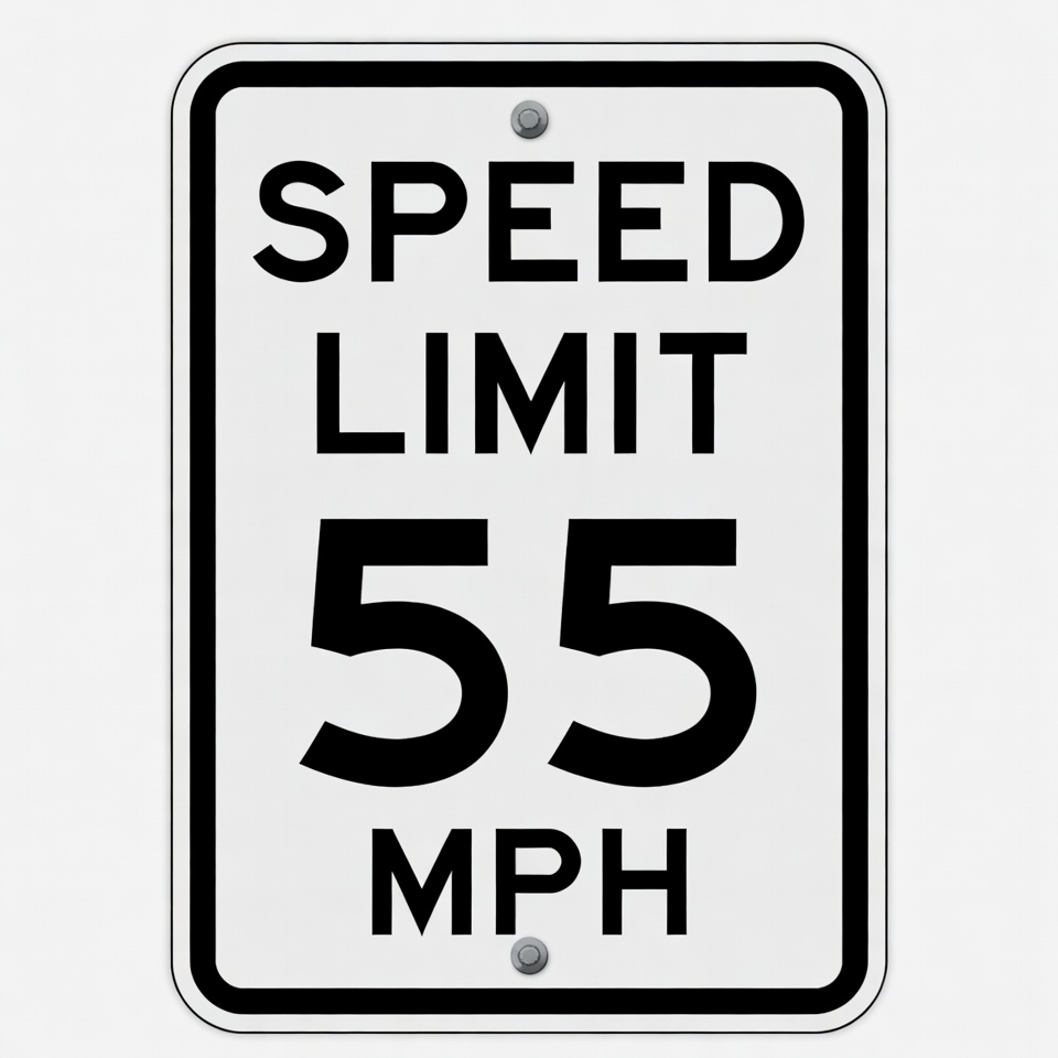 55 mph, black text, driving sign, highway sign, isolated background, mph, rectangular sign, reflective sign, road sign, signage, speed limit, stop sign, traffic sign, transportation, vehicle sign, warning sign, white sign, speed limit sign