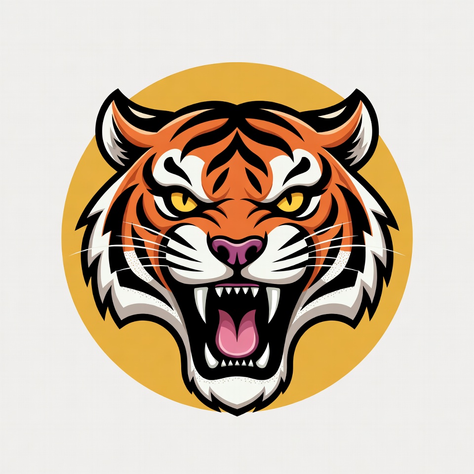 animal illustration, big cat, black stripes, cartoon tiger, clipart, fierce tiger, isolated background, logo design, mascot, open mouth, orange tiger, predatory animal, roaring tiger, sharp fangs, snarling tiger, tiger emblem, tiger face, tiger head, tiger illustration, vector tiger, wild animal, yellow circle, tiger