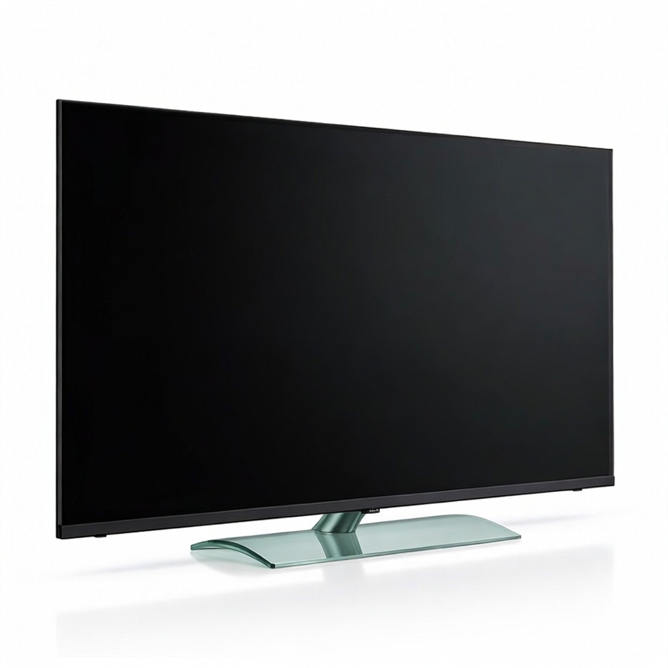 4K TV, OLED TV, TV, black TV, display, electronics, flat screen, glass stand, green glass, home entertainment, isolated, modern TV, product photo, screen, smart TV, stand, white background, television