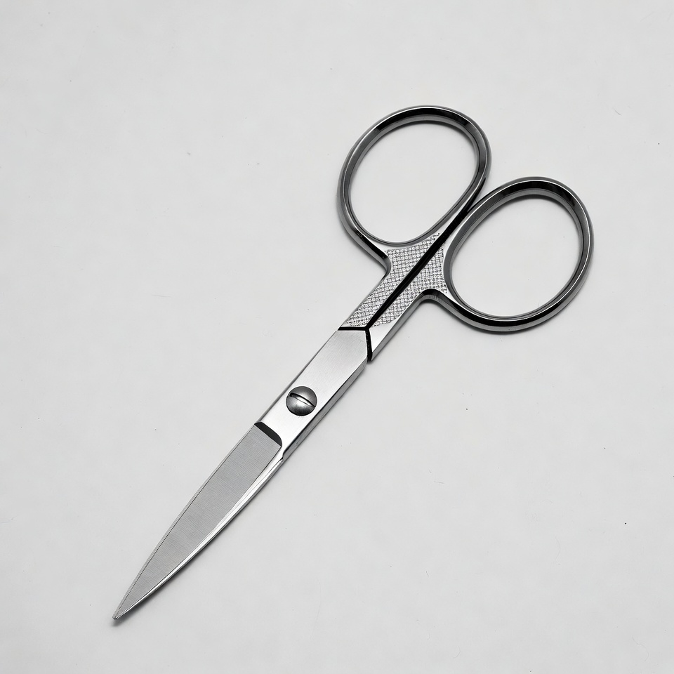 black handles, craft scissors, cutting tool, ergonomic handles, grooming scissors, isolated background, metal scissors, pointed scissors, precision scissors, sharp scissors, shiny metal, silver scissors, tool, white background, scissors