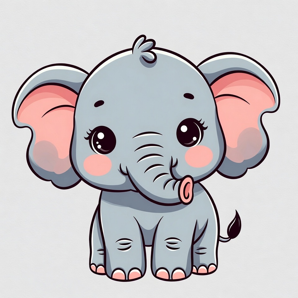 adorable animal, animal clipart, baby animal, big eyes, cartoon elephant, chibi elephant, cute elephant, elephant cartoon, elephant illustration, gray elephant, isolated background, kawaii elephant, pink ears, vector elephant, baby elephant