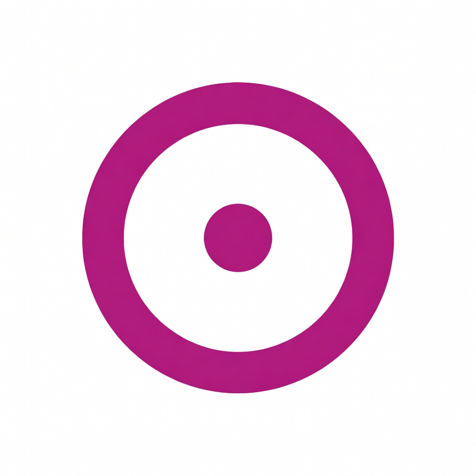 A vibrant purple circle features a distinct white center and a smaller purple dot inside it. The design is simple and bold against a transparent background. It appears as a vector graphic or icon.