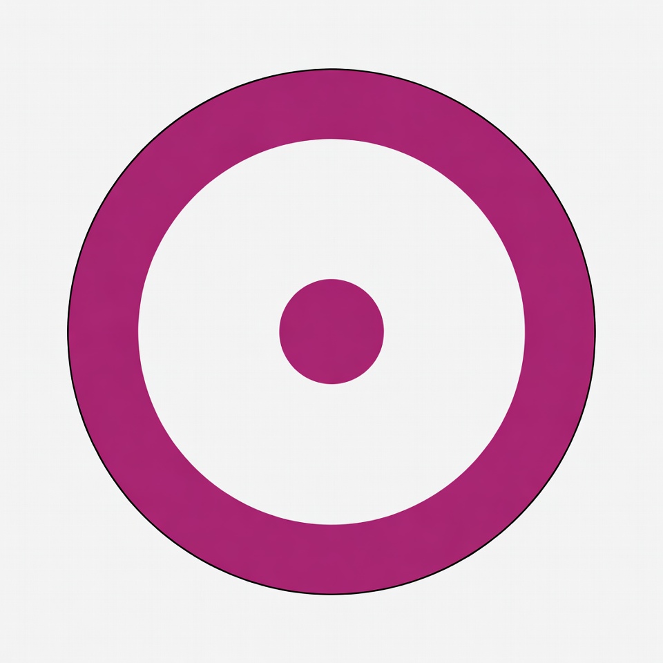 bold, bullseye, circle, clipart, concentric, dot, geometric, graphic, icon, illustration, isolated background, minimalist, purple dot, round, simple, symbol, target, vector, white circle, purple circle