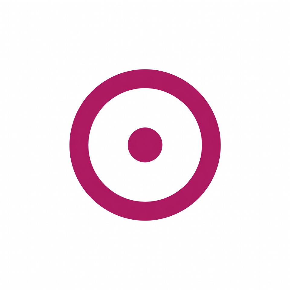 A simple purple bullseye target with a thick outer ring and a small central dot on a white background. The design features concentric circles in magenta tones. It is isolated and centered perfectly.