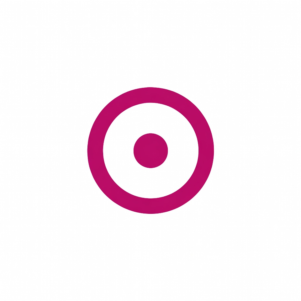 A simple purple bullseye target on a white background features a thick outer ring, a white middle ring, and a small solid purple center dot. The design is clean and bold with smooth curves.