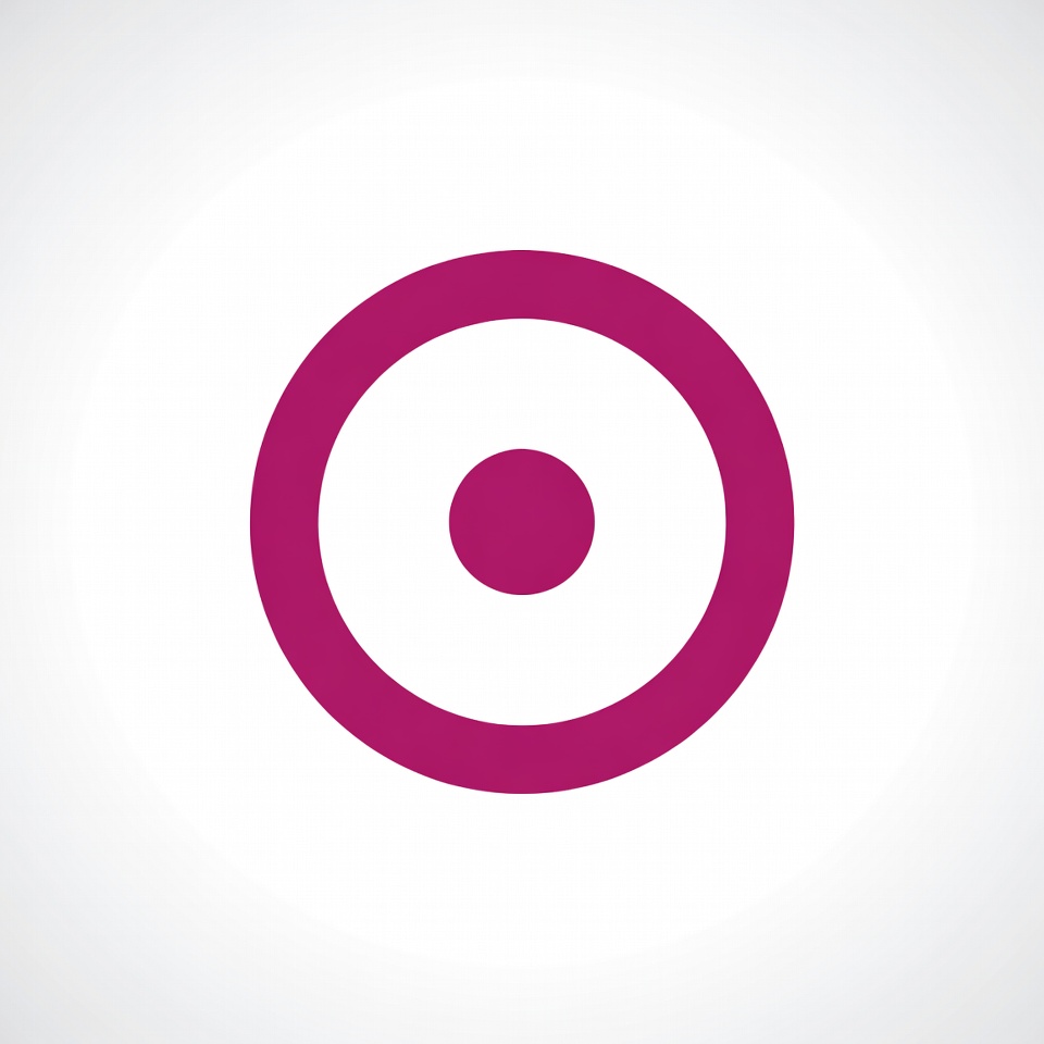 A simple purple circle icon features a smaller solid purple dot centered inside it. The design is on a transparent gray background. It appears as clean vector clipart.