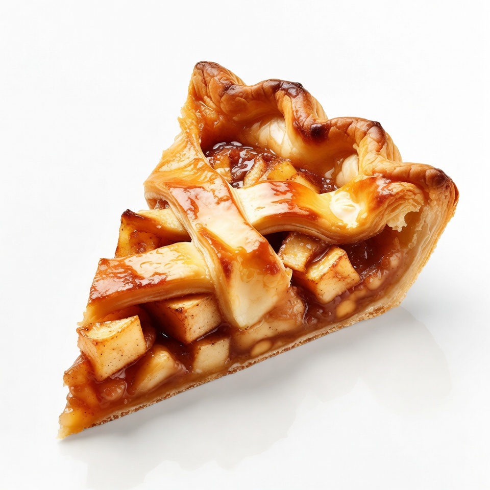 apple chunks, apple dessert, baked pie, caramelized apples, dessert slice, flaky crust, food photography, fruit pie, golden crust, isolated background, lattice pie, pastry, pie slice, white background, apple pie