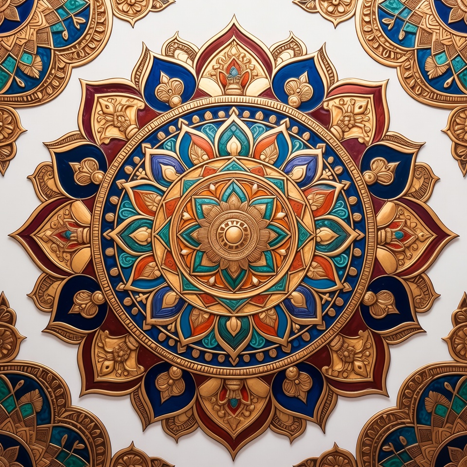Indian design, blue mandala, clipart, decorative border, ethnic art, floral pattern, geometric art, gold filigree, gold mandala, henna design, illustration, intricate design, maroon colors, meditation art, orange details, ornate mandala, rangoli pattern, sacred geometry, spiritual symbol, symmetrical pattern, teal accents, white background, mandala