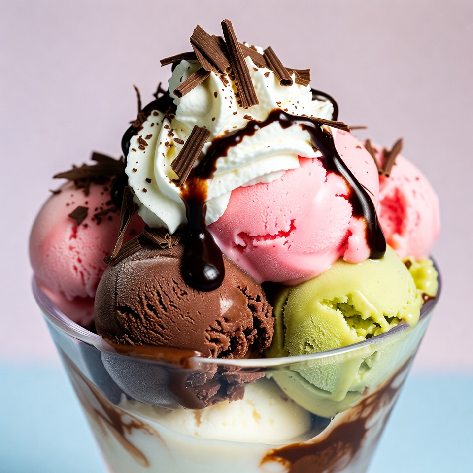 Colorful Ice Cream Sundae with Whipped Cream