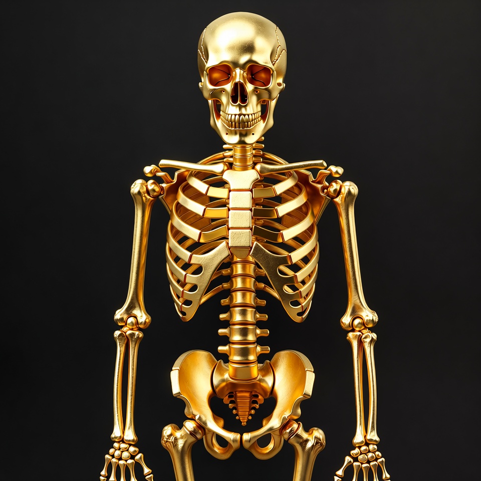 Golden Human Skeleton on Black Background