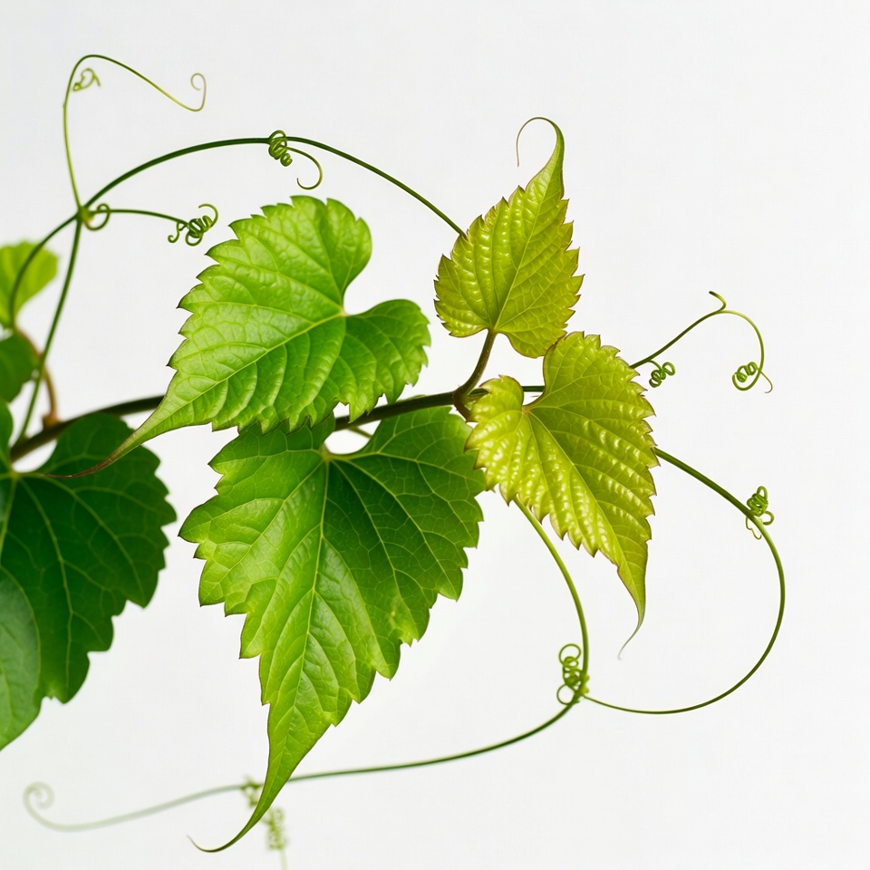 botany, climbing plant, curly tendrils, foliage, fresh leaves, grape leaves, grape plant, green leaves, isolated, leaf veins, lobed leaves, nature, plant, tendrils, vines, white background, grapevine leaves