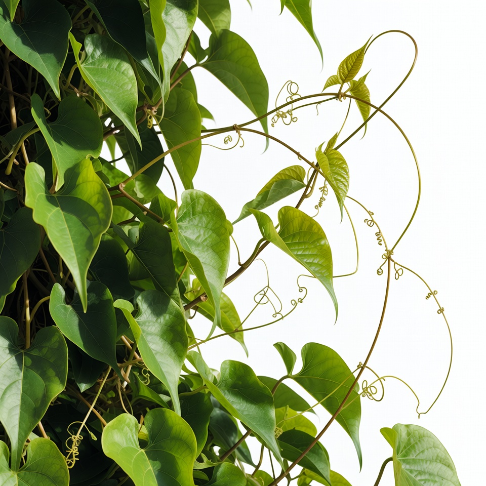 botany, climbing plant, creeper, foliage, fresh leaves, garden plant, green leaves, isolated, ivy, leaf veins, leaves, lush green, nature, plant, stems, tendrils, tropical vine, white background, young shoots, vine