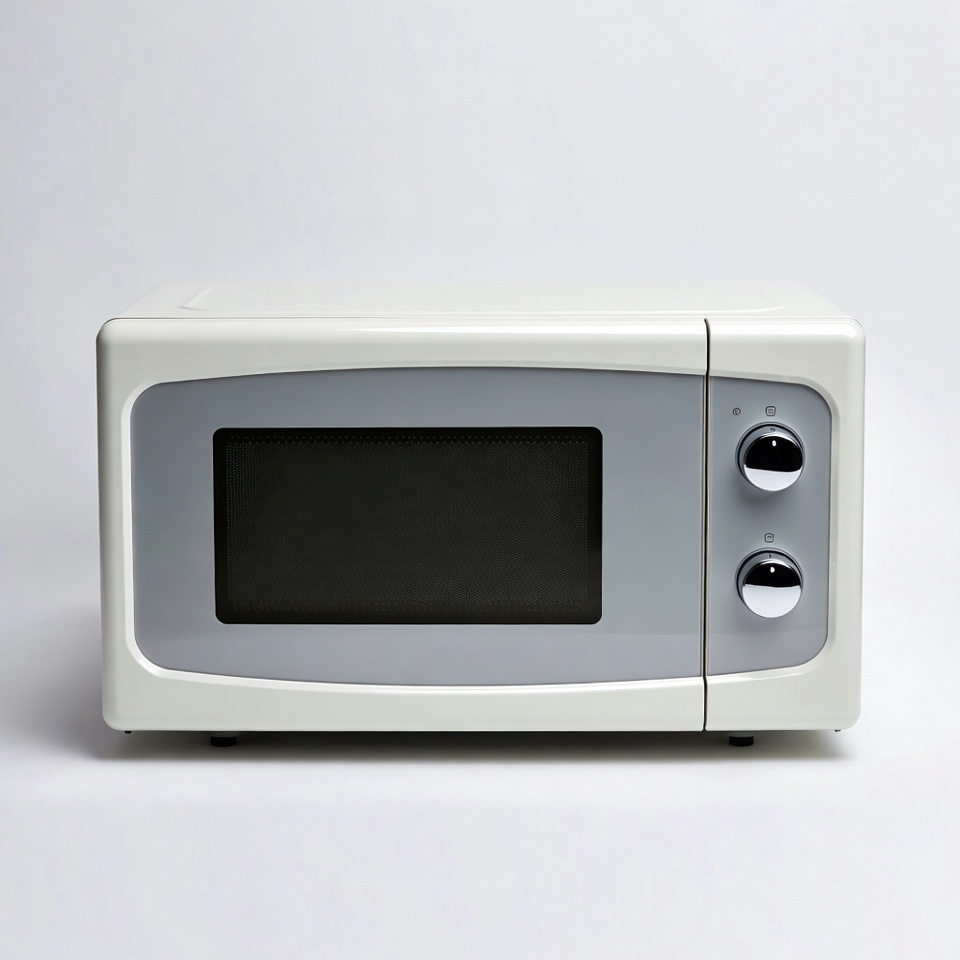 compact microwave, control knobs, counter top, digital display, gray accents, home appliance, isolated background, kitchen appliance, microwave, modern kitchen, oven, small microwave, white appliance, white microwave, microwave oven