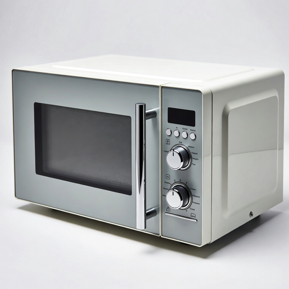 buttons, control knobs, cooking appliance, countertop microwave, digital display, glass door, handle, home appliance, isolated background, kitchen appliance, microwave, modern microwave, silver accents, white microwave, microwave oven