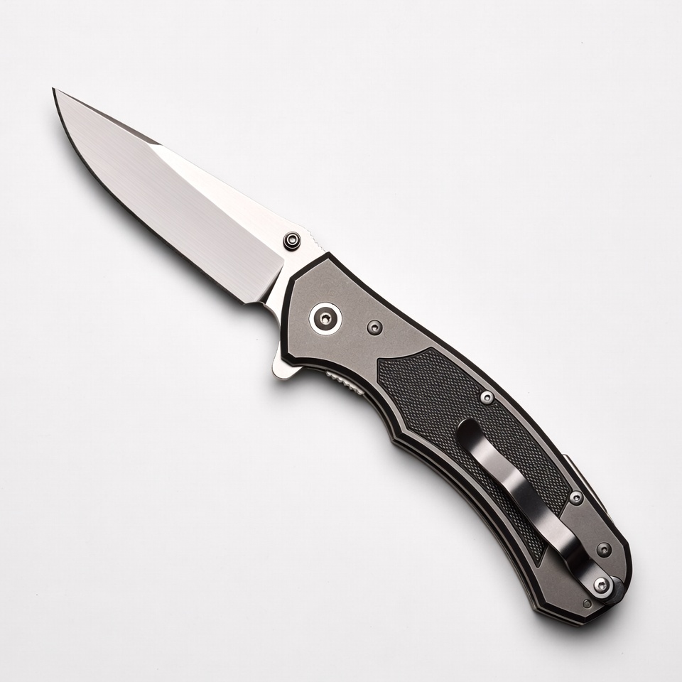 EDC knife, black handle, flip knife, isolated background, knife blade, metal knife, outdoor knife, pocket knife, sharp blade, silver blade, survival knife, tactical knife, tool, weapon, folding knife