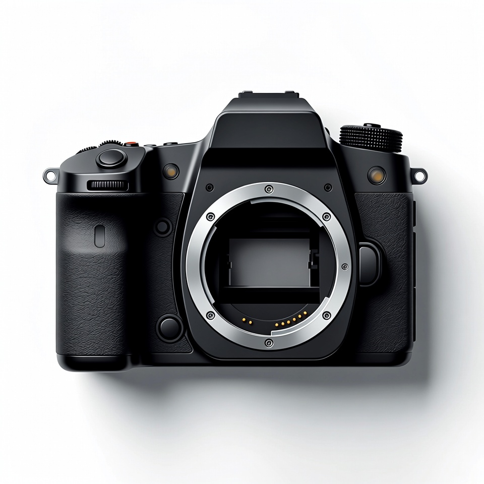 Nikon camera, black camera, camera buttons, camera dials, camera grip, camera lens mount, camera top view, digital camera, isolated background, mirrorless camera, photo gear, photography equipment, professional camera, white background, DSLR camera