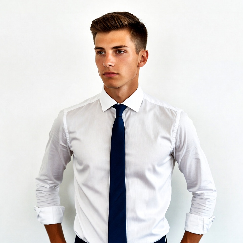 Young man in white shirt and navy tie