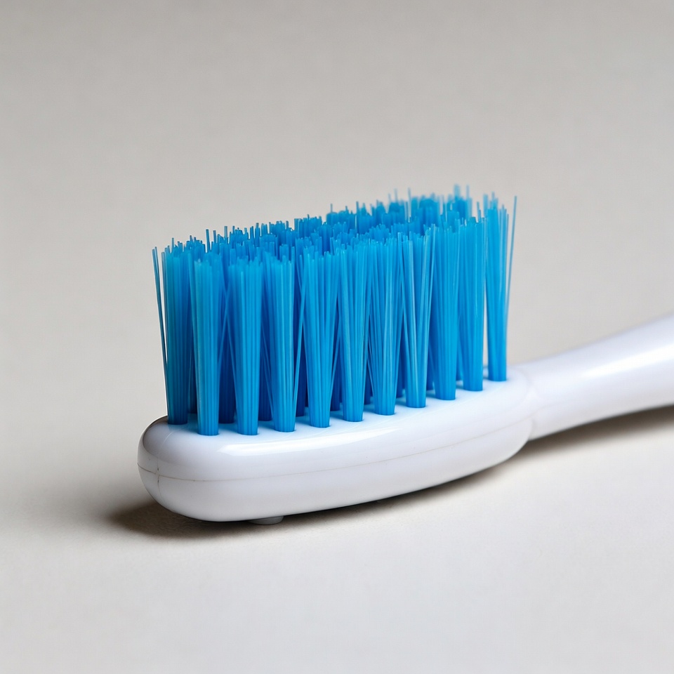 Blue bristles toothbrush on white handle