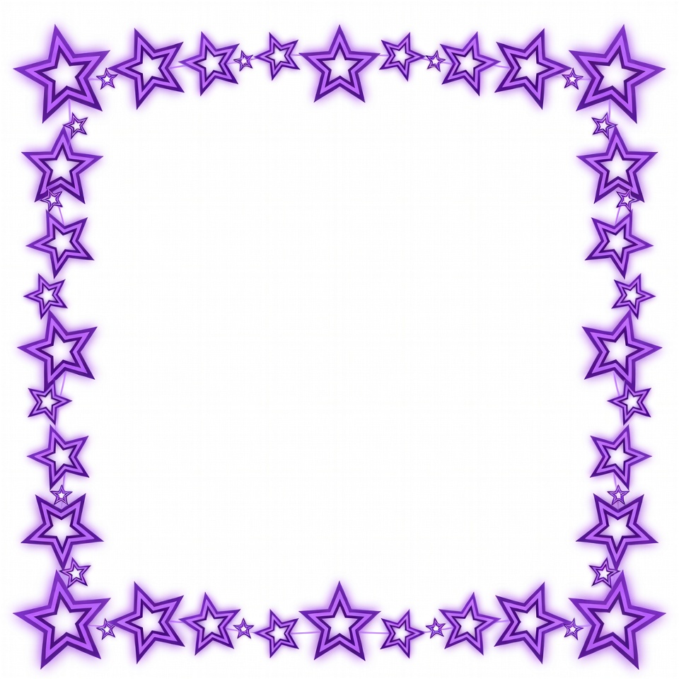 A square frame border made of glowing purple stars arranged along all four edges. The interior is completely white and empty. The stars have a sparkling, neon-like effect.