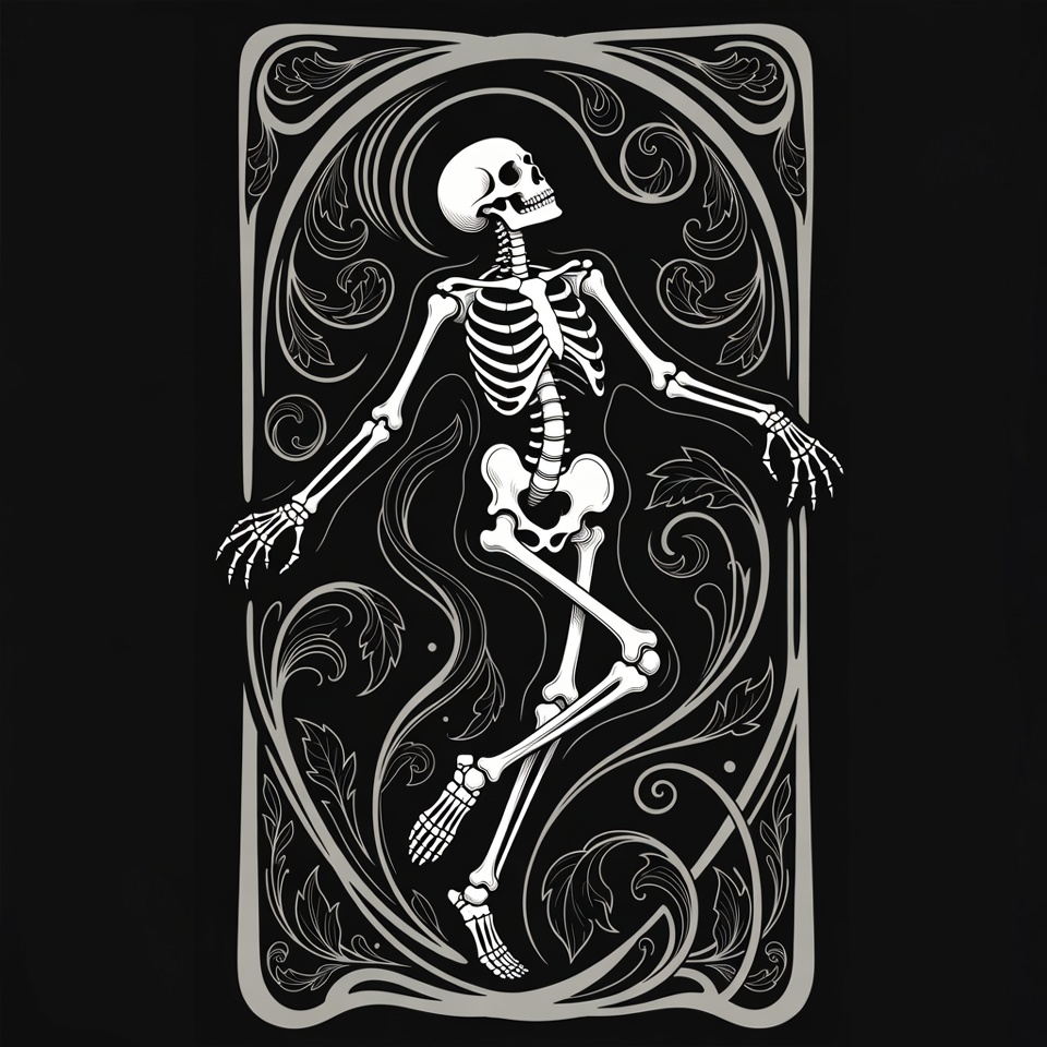 Art Nouveau Dancing Skeleton Illustration