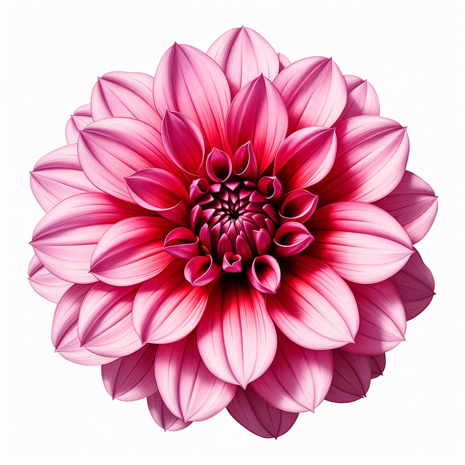 bloom, closeup, dahlia flower, floral, flower, flower center, garden flower, illustration, isolated background, layered petals, petals, pink flower, red accents, vibrant flower, white background, pink dahlia