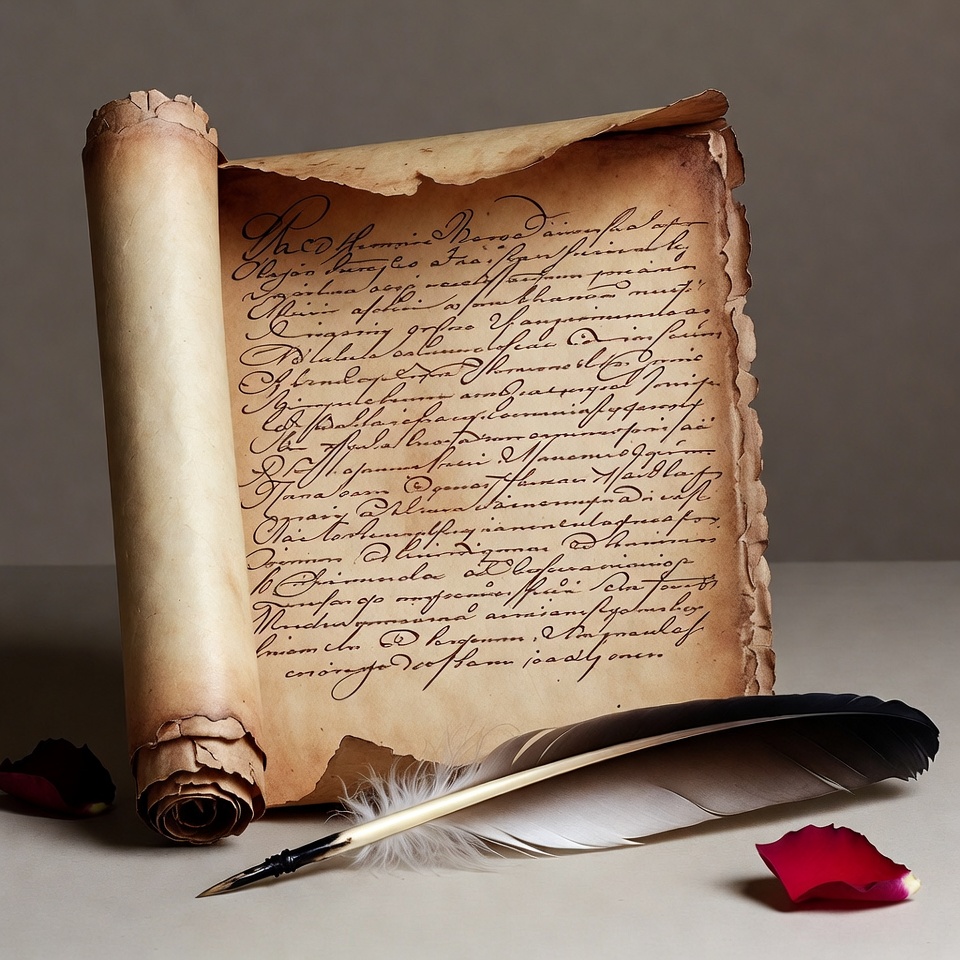 Ancient Scroll with Quill and Rose