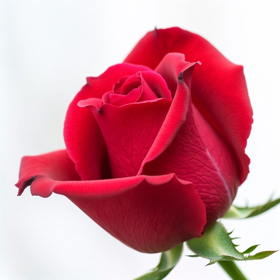 beauty, bloom, close-up, elegant, floral, flower, fresh, garden, isolated, macro, nature, petals, red flower, romantic, rose bloom, rose flower, single flower, stem, thorns, vibrant, white background, red rose