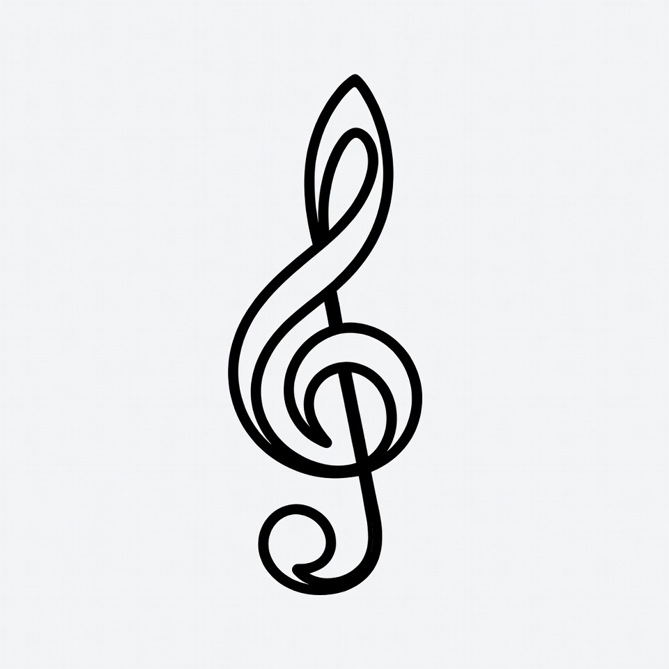 black white, clef, clipart, elegant, graphic, icon, illustration, isolated, line art, melody, music symbol, musical note, notation, outline, sheet music, simple, staff, swirl, vector, treble clef