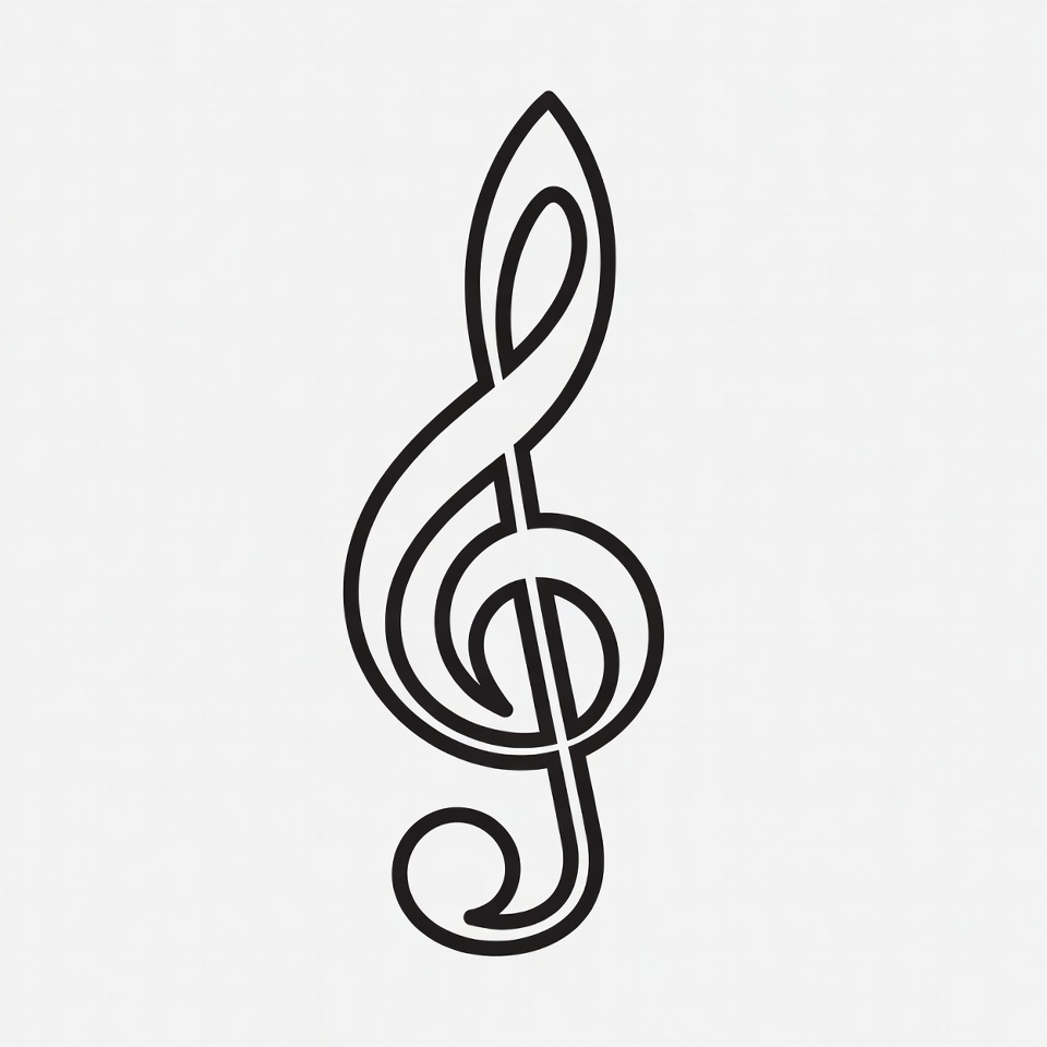 G clef, black white, clef, clipart, illustration, isolated background, line art, music symbol, musical notation, note symbol, outline, sheet music, treble clef