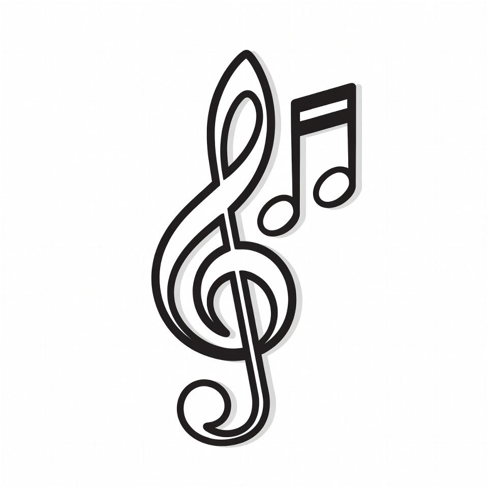 3D effect, black white, clef, clipart, graphic, icon, illustration, isolated background, line art, music, music notes, musical symbol, notation, notes, outline, shadow, sheet music, symbol, vector, treble clef